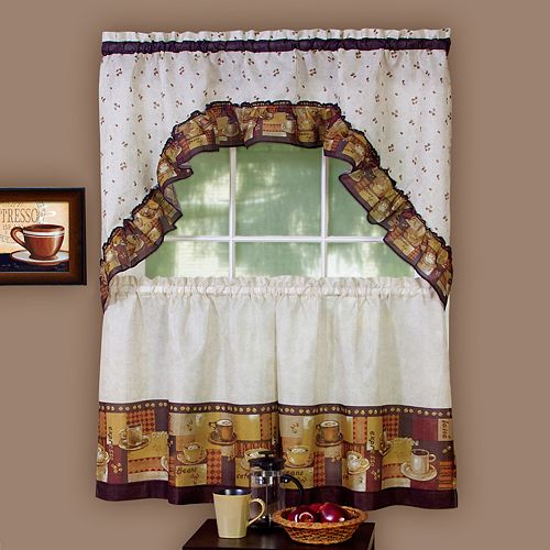 Coffee 3 Pc Swag Tier Kitchen Curtain Set